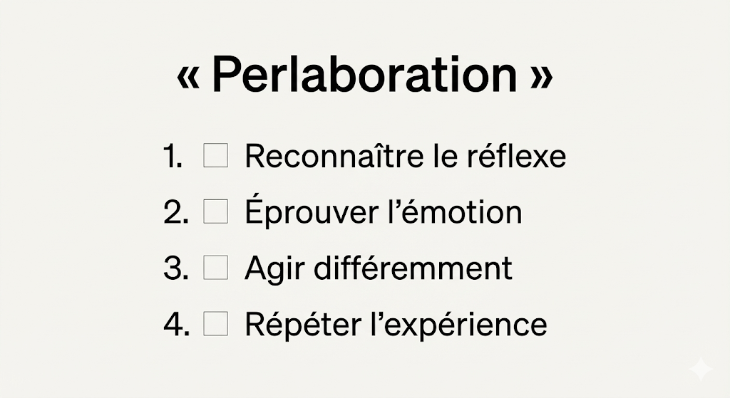 Le changement durable n’est pas une révélation soudaine, c’est le fruit de la perlaboration (en anglais, on parle volontiers de working-through). C’est le travail de reprise progressive des anciens schémas jusqu’à ce qu’ils s’effacent au profit de nouveaux circuits.